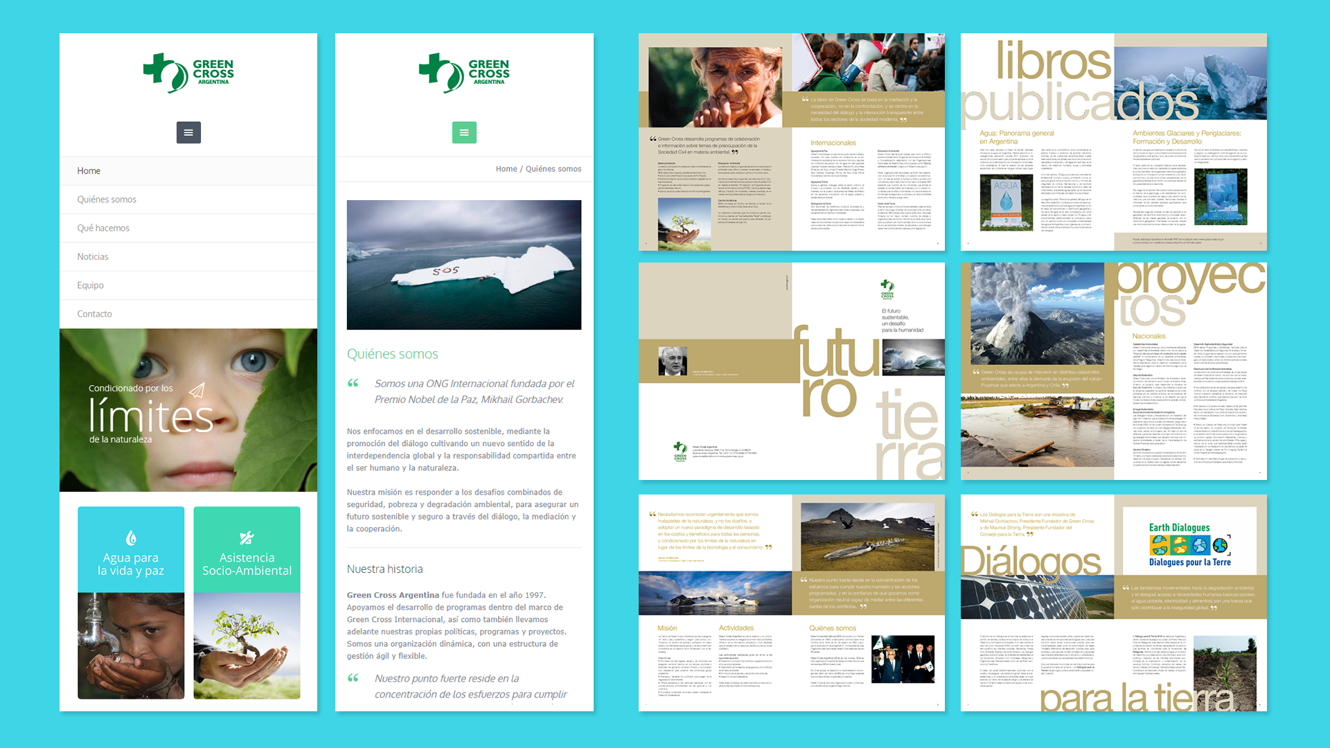 Dicen que es mucho más fácil conseguir clientes nuevos que mantener uno solo a lo largo de los años. ¡Creemos que esto es absolutamente cierto! Green Cross es una ONG internacional fundada por el premio Nobel de la Paz, Mikhail Gorbachev. Centrada en el desarrollo sostenible, fomenta el diálogo y se dedica a la relación entre los seres humanos y la naturaleza. Desde 2005 trabajamos en todas las piezas de su sistema de diseño, nos hemos convertido en parte de la familia Green Cross Argentina. Hemos trabajado en el brochure institucional de la ONG y en todas las piezas gráficas de comunicación que la organización necesitó a lo largo de los años. Con el paso del tiempo y con los cambios en tecnología aplicada al desarrollo web, hemos tenido la oportunidad de diseñar 3 versiones de su sitio web. Esta última versión fue desarrollada íntegramente en Bootstrap. Nuestro trabajo consistió en desarrollar una versión móvil y responsive del sitio web con un blog para su posterior posicionamiento SEO. Nos alegra mucho saber que esta versión web, tanto por su estética minimalista como por su eficiencia en cuanto a experiencia de usuario, haya sido tomada como ejemplo para el diseño de otras páginas de Green Cross alrededor del mundo.